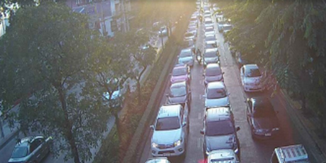 ถนนวิภาวดีรังสิต จากห้าแยกลาดพร้าว มุ่งหน้า ดินแดง รถมาก ยังเคลื่อนตัวได้ดี