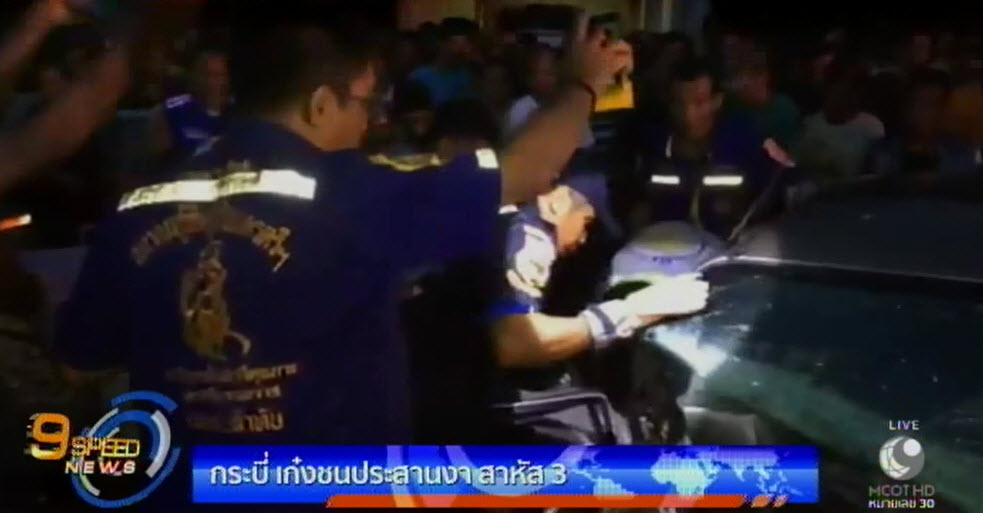 กระบี่ 18 ธ.ค.-รถเก๋ง ผอ.โรงพยาบาลส่งเสริมสุขภาพตำบลดินอุดม จ.กระบี่ ประสานงานกับรถเก๋ง อดีตผู้ใหญ่บ้าน ตำบลคลองท่อมเหนือ บาดเจ็บ 3 คน