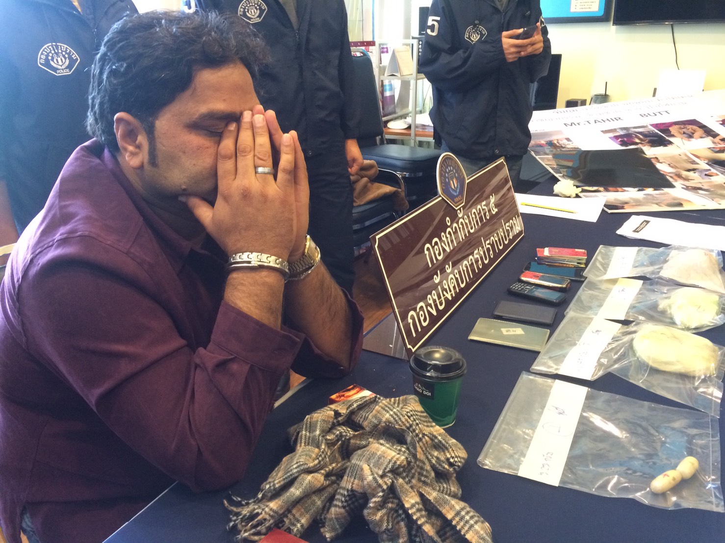 พ.ต.อ.ภูมินทร์ เปิดเผยว่า ตำรวจสากล หรือ อินเตอร์โพล แจ้งให้ตำรวจเฝ้าระวังเครือข่ายยาเสพติดจากประเทศปากีสถานที่เดินทางเข้ามาในประเทศไทยโดยใช้เป็นทางผ่านไปประเทศที่ 3 โดยมีพฤติกรรณ์ซุกซ่อนยาเสพติดตามร่างกาย จนกระทั่งเช้าตรู่วันนี้(18ธ.ค.) นาย TAHIR ผู้ต้องหาได้เดินทางเข้าประเทศไทยเพื่อเดินทางต่อไปยังประเทศศรีลังกา ซึ่งมีท่าทีพิรุธไม่ยอมสแกนนิ้วขณะผ่านเข้าสำนักงานตรวจคนเข้าเมือง เจ้าหน้าที่จึงแสดงตัวขอตรวจค้นแต่ไม่พบ จึงนำตัวส่งโรงพยาบาลตำรวจ จึงพบว่ามีการซุกซ่อนยาเสพติดทางทวารหนัก ซึ่งนาย TAHIR ให้การรับสารภาพ พร้อมระบุว่ายาเสพติดทั้งหมดจะนำไปส่งให้ลูกค้าในประเทศปลายทางแต่โดนจับได้เสียก่อน