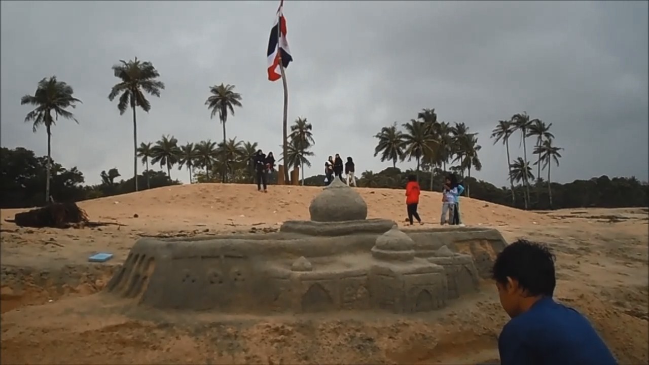 บรรยากาศชายหาดเกาะยาว ม.1 ต.เจ๊ะเห อ.ตากใบ จ.นราธิวาส ซึ่งเป็นสถานที่ท่องเที่ยวขึ้นชื่ออีกแห่งของจังหวัด มีกลุ่มนักศึกษาจากมหาวิทยาลัยสงขลานครินทร์ วิทยาเขตปัตตานี คณะศึกษาศาสตร์ สาขาศิลปศึกษา กว่า 40 ชีวิต ช่วยกันสร้างสรรค์ประติมากรรมเม็ดทรายขึ้นเป็นครั้งแรกในพื้นที่ 3 จังหวัดชายแดนภาคใต้ ซึ่งถือเป็นหนึ่งในภาคปฏิบัติของวิชาประติมากรรม โดยกลุ่มนักศึกษาเหล่านี้เนรมิตเม็ดทรายเพื่อสะท้อนถึงสันติภาพและวัฒนธรรมชายแดนใต้ที่ในอดีตเต็มไปด้วยความผาสุกที่อยู่ร่วมกันได้ในสังคมโดยไม่มีความแตกแยก