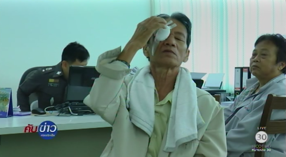 พ.ต.ท.บุญเลิศ อาคมวัฒนะ พนักงานสอบสวน สภ.บางบัวทอง ได้เรียก ชาย อายุ 65 ปี เข้าสอบปากคำหลังได้รับบาดเจ็บถูกลูกกระสุนปืนยิงเข้าตาข้างขวาทำให้ตาบอดสนิท จากเหตุการณ์กลุ่มวัยรุ่นไล่ตีกันที่บริเวณแยกบางพลู ถนนบางกรวย-ไทรน้อย ต.บางรักพัฒนา อ.บางบัวทอง จ.นนทบุรี เหตุเกิดเมื่อวันที่ 24 พ.ย.59 เวลา 15.40 น. สืบเนื่องจากเมื่อวันเวลาดังกล่าวเกิดเหตุทะเลาะวิวาทกันที่แยกยางพลู โดยมีวัยรุ่นชาย 2 คนขับขี่รถจักรยานยนต์หนีมาและเฉี่ยวชนกับคนเดินเท้าทำให้มีผู้ได้รับบาดเจ็บ ส่วนชายคนดังกล่าวยืนอยู่บริเวณริมทางถูกลูกหลงมีวัตถุไม่ทราบชนิดกระเด็นเข้าตาข้างขวาได้รับบาดเจ็บสาหัส เจ้าหน้าที่กู้ภัยนำตัวส่ง รพ.พระนั่งเกล้า แพทย์นำตัวเข้าห้องเอ็กซเรย์พบว่าเป็นลูกกระสุนปืนขนาด .22 มม. ฝังอยู่ที่ปลายประสาทสมองไม่สามารถผ่าตัดนำออกมาได้เนื่องจากจะเกิดอันตราย ส่วนลูกตาขวาตาดำฉีดขาดไม่สามารถเย็บรักษาได้จึงได้ผ่าตัดนำลูกตาออกเพราะจะติดเชื้อและลาม หลังผ่าตัดตาข้างขวาบอดสนิท รักษาตัวอยู่เป็นเวลา 15 วันใช้สิทธิ์ผู้สูงอายุรักษาฟรี โดยมีภรรยาดูแลทุกวัน ทั้ง 2 เป็นคนชราไม่มีรายได้อะไรนอกจากรับจ้างทั่วไป อาศัยอยู่กับหลานสาววัย 12 ปีนักเรียนชั้น ม.1 อีก 1 คน