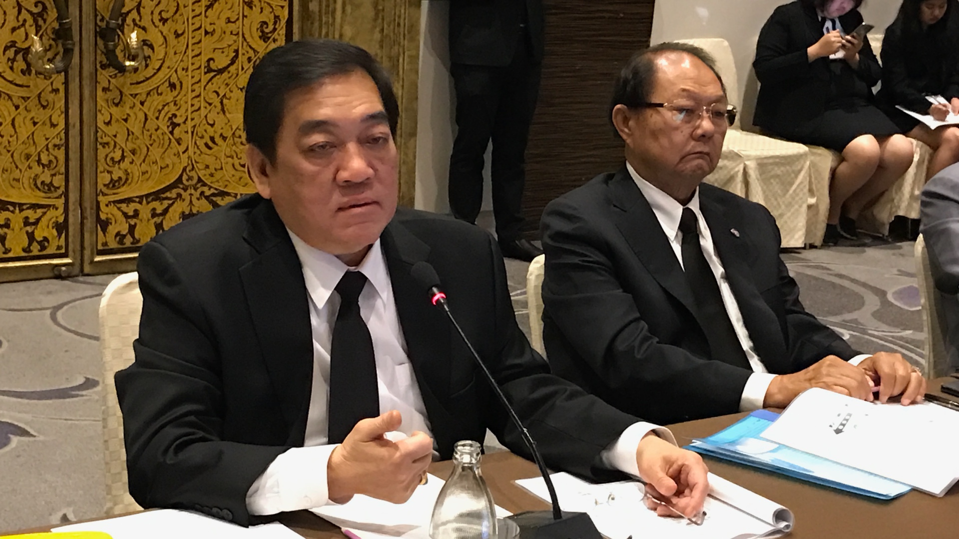 นายสัตวแพทย์บุญเพ็ง สันติวัฒนธรรม ประธานกลุ่มอุตสาหกรรมอาหาร สภาอุตสาหกรรมแห่งประเทศไทย นายพจน์ อร่ามวัฒนานนท์ รองประธานหอการค้าไทย สภาหอการค้าแห่งประเทศไทย และนายณัฐพล นิมมานพัชรินทร์ รองผู้อำนวยการสถาบันอาหาร แถลงข่าว