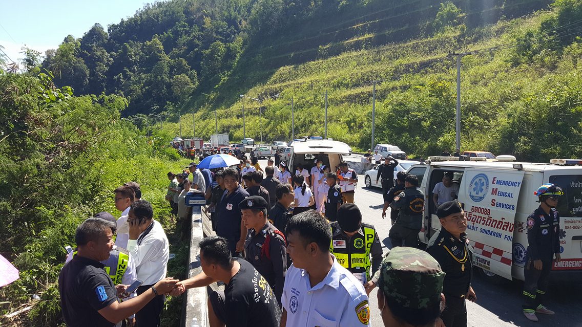 นายพิพัฒน์ เอกภาพันธุ์ ผู้ว่าราชการจังหวัดอุตรดิตถ์ ยังคงอำนวยการทำงานของชุดเจ้าหน้าที่อย่างต่อเนื่องในการช่วยเหลืออุบัติเหตุรถโดยสารปรับอากาศ ร่วม บขส.999 ตกเขาพลึง ความลึกกว่า 100 เมตร ถนนทางหลวงหมายเลข 11 ขาเข้าเมืองอุตรดิตถ์ ต.บ้านด่านนาขาม อ.เมือง จ.อุตรดิตถ์ รอยต่อกับจังหวัดแพร่ ช่วงสายวันนี้ (22 พ.ย.) เบื้องต้นมีผู้เสียชีวิต 5 ราย และบาดเจ็บกว่า 40 ราย ซึ่งเจ้าหน้าที่ทั้งแพทย์ พยาบาล ทหาร ตำรวจ อาสาสมัครกู้ภัย ต่างระดมเครื่องมือช่วยเหลืออย่างเต็มที่