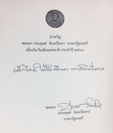 ก.ศึกษาธิการ 4 ม.ค. – นายกรัฐมนตรี มอบคำขวัญวันเด็กเเห่งชาติ ประจำปี 2560 ความว่า “เด็กไทยใส่ใจศึกษา พาชาติมั่นคง”