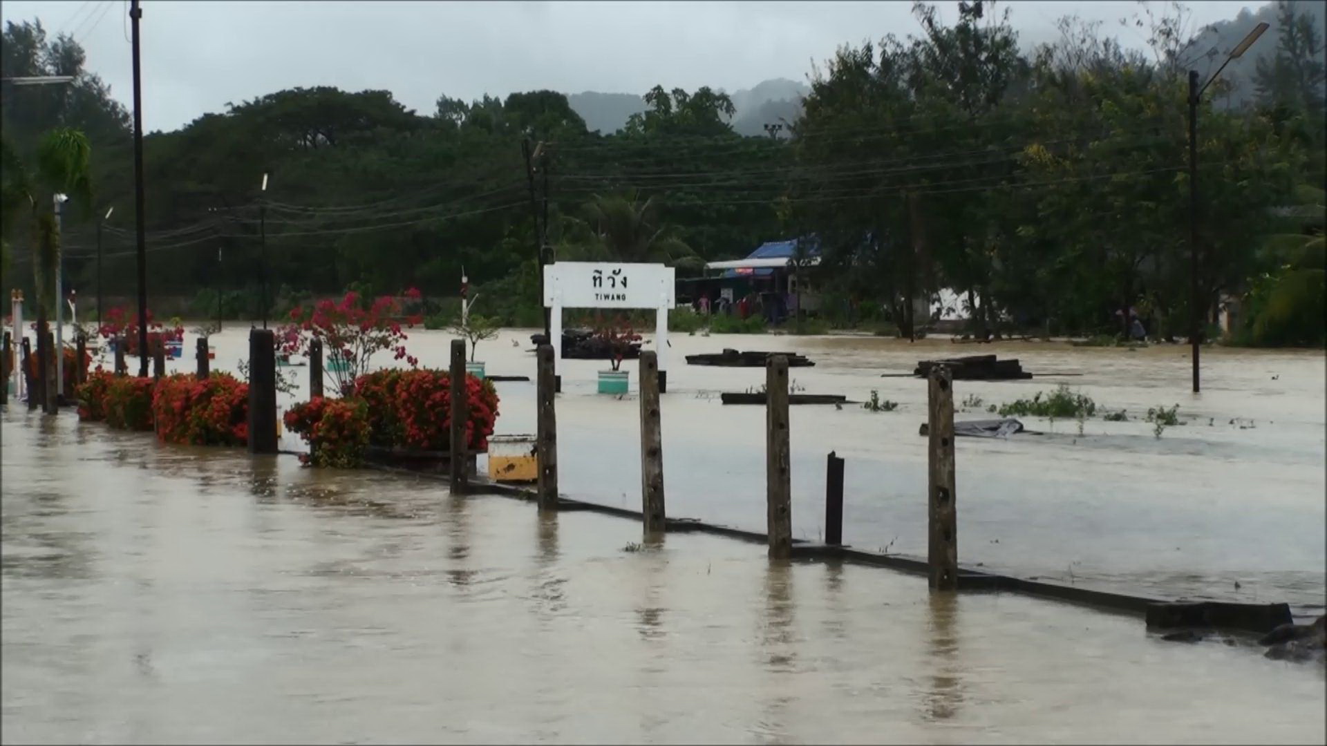 สถานการณ์น้ำท่วม จ.นครศรีธรรมราช ส่งผลกระทบมากขึ้น ล่าสุดวันนี้ (4 ม.ค.) ขบวนรถไฟสายใต้ต้องหยุดทุกเส้นทาง เนื่องจากน้ำท่วมมิดรางและไหลเชี่ยวในพื้นที่ ต.ที่วัง อ.ทุ่งสง เป็นระยะทางกว่า 300 เมตร และละแวกสถานีรถไฟที่วัง เจ้าหน้าที่ต้องใช้เชือกผูกโยง เพื่อให้ประชาชนใช้เป็นแนวยึดป้องกันน้ำซัด โดยรถไฟทุกขบวนต้องหยุดเดินรถอยู่ที่สถานีชุมทางทุ่งสง และได้จัดรถบัสอำนวยความสะดวกให้กับผู้โดยสารเดินทางต่อไปยังจุดหมายปลายทาง ส่วนเขตเทศบาลเมืองทุ่งสง น้ำเริ่มน้ำลดลงบางพื้นที่