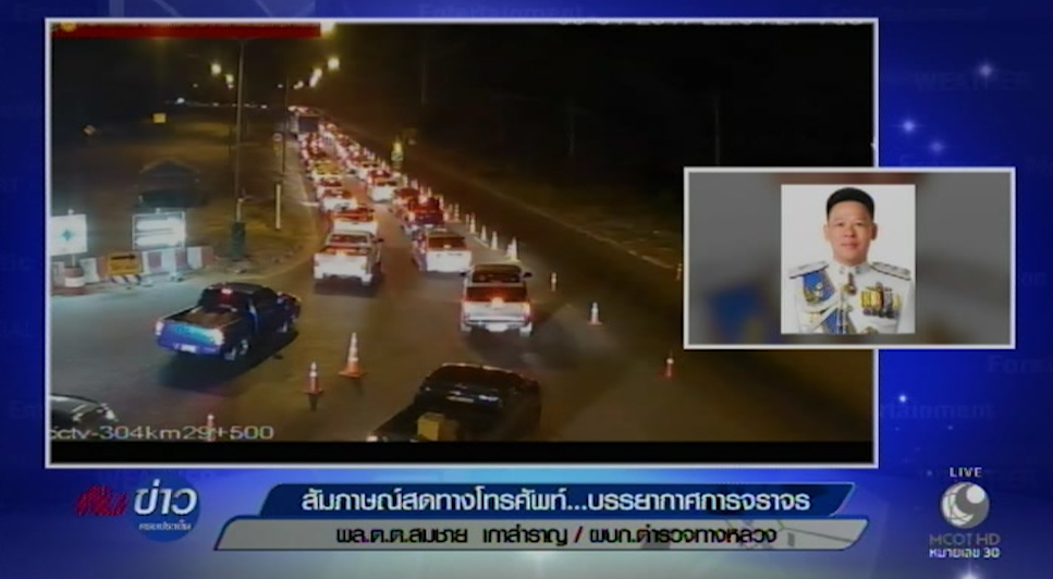 พล.ต.ต.สมชาย เกาสำราญ ผู้บังคับการตำรวจทางหลวง เผยเส้นทางสายอีสาน มีปริมาณรถเพิ่มเติมต่อเนื่อง บางจุดหนาแน่น ส่วนรถที่เข้าช่วงถนนพหลโยธินแล้วก็จะเดินทางโดยสะดวก คาดประชาชนเดินทางเข้ากรุงเทพฯ ต่อเนื่องตลอดทั้งคืนนี้ ส่วนที่ถนนสายเอเซียช่วง อ.อินทร์บุรี จ.สิงห์บุรี ปริมาณรถมีจำนวนมากแต่ยังเคลื่อนตัวได้ ด้านเจ้าหน้าที่คอยอำนวยสะดวกตลอดเส้นทาง.-สำนักข่าวไทย
