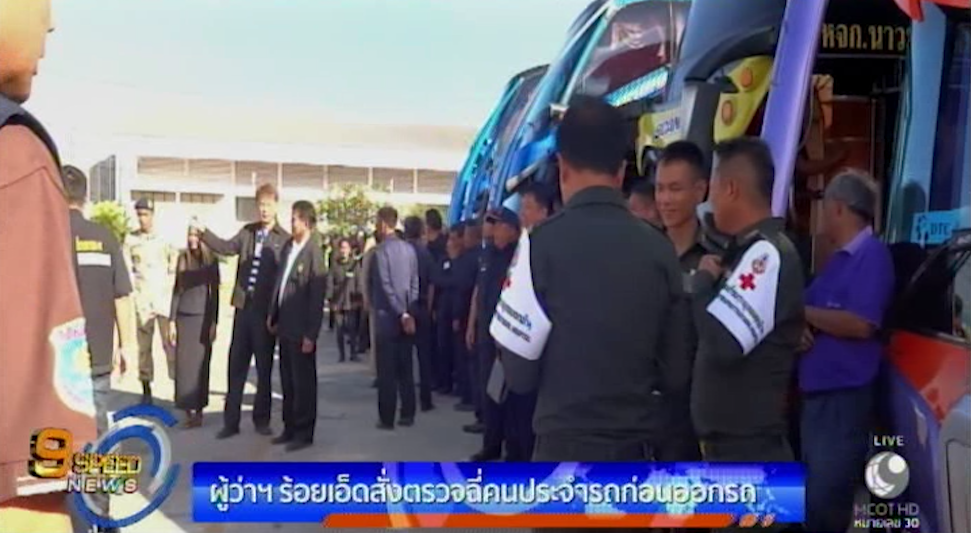ร้อยเอ็ด 3 ม.ค.-ผู้ว่าฯ ร้อยเอ็ด สั่งเข้มตรวจปัสสาวะและเช็กสภาพร่างกายคนขับรถและพนักงานประจำรถทุกคนก่อนการเดินทางเข้ากรุงเทพฯ