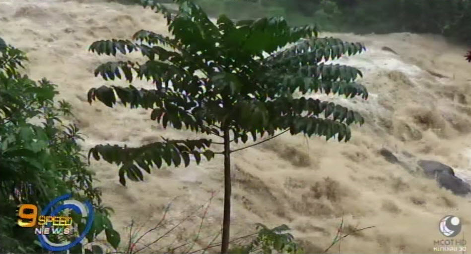 ตรัง 3 ม.ค. – เกิดเหตุระทึก เมื่อน้ำป่าจากเทือกเขาบรรทัดหลากลงมาที่น้ำตกกะช่อง อ.นาโยง จ.ตรัง จนเกิดกระแสน้ำไหลเชี่ยว ขุ่นแดง พัดต้นไม้ล้มขวางคอสะพานจำนวนหลายสิบต้น นักท่องเที่ยวกว่า 200 คน ที่แวะมาพักผ่อนต้องรีบขึ้นรถหนีน้ำกลับทันที เพราะเกรงจะเกิดน้ำป่าท่วมถนนจนรถออกไม่ได้ ขณะที่กระแสน้ำได้หลากท่วมหมู่บ้านและถนนรอยต่อ ต.ช่อง รวมถึงโรงพยาบาลส่งเสริมสุขภาพตำบล สูงกว่า 1 เมตร เจ้าหน้าที่ต้องขนย้ายเวชภัณฑ์และอุปกรณ์หนีน้ำอย่างโกลาหล
