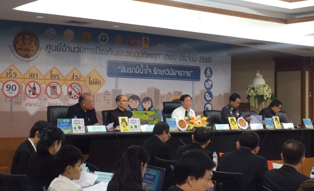 พล.ต.ท. วิทยา ประยงค์พันธุ์ ผู้ช่วยผู้บัญชาการตำรวจแห่งชาติ เป็นประธาน แถลงสรุปผลการดำเนินงานของศูนย์อำนวยการป้องกันและลดอุบัติเหตุทางถนน (ศปถ.) ประจำปี 2560 กล่าวถึงความคืบหน้าการตรวจสอบสาเหตุอุบัติเหตุรถตู้โดยสารสาธารณะที่เกิดอุบัติเหตุประสานงากับรถกระบะที่จ.ชลบุรี จนทำให้มีผู้เสียชีวิตและได้รับบาดเจ็บเป็นจำนวนมาก ว่า ทางคณะกรรมการฯ กำลังพิจารณารายละเอียด และสอบสวนสาเหตุที่เกิดขึ้น ซึ่งเบื้องต้นพบว่าเกิดจากความประมาทของผู้ขับรถตู้โดยสารสาธารณะที่น่าจะมาจากความอ่อนเพลีย และหลับใน เนื่องจากเส้นทางที่เกิดอุบัติเหตุไม่ใช่ทางโค้งหรือจุดเสี่ยง รวมถึงรอบพื้นที่ไม่มีร่องรอยของการเบรครถ โดยรถตู้โดยสารสาธารณะได้ข้ามเกาะกลางไปชนรถกระบะอีกฝั่งของถนน ซึ่งชัดเจนว่ารถตู้ฯ ประมาท ส่วนการตรวจสอบปริมาณแอลกอฮอร์ของผู้ขับกำลังรอผล รวมถึงสภาพรถทางเจ้าหน้าที่พิสูจน์หลักฐานกำลังพิจารณารายละเอียดอยู่.-สำนักข่าวไทย
