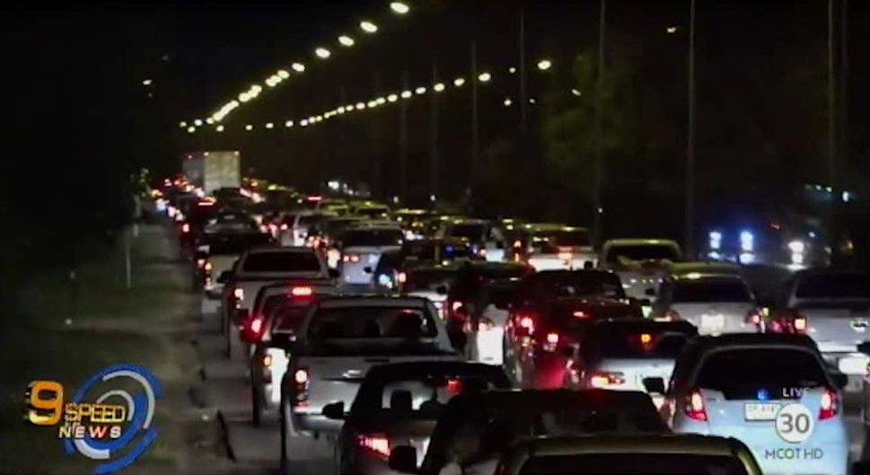 ชาวภาคอีสานแห่เดินทางกลับกรุงเทพฯ ล่วงหน้า ทำให้มีปริมาณรถยนต์สะสมหนาแน่น บริเวณถนนเลี่ยงเมืองนครราชสีมา มุ่งหน้าสะพานต่างระดับแยกปักธงชัย ทำให้รถเคลื่อนตัวได้ช้า ทำความเร็วได้เพียง 20-30 กิโลเมตรต่อชั่วโมง อีกทั้งยังมีรถบางคันวิ่งแทรกตามไหล่ทาง เบื้องต้นเจ้าหน้าที่ต้องปิดจุดกลับรถชั่วคราว 4 จุด เพื่อให้ระบายรถยนต์ โดยมีตำรวจ, อปพร. และหน่วยกู้ภัยฯ ต้องคอยอำนวยความสะดวกตลอดทั้งคืน ส่วนสาเหตุที่รถยนต์ชะลอจนรถติดสะสมกว่า 5 กิโลเมตร เนื่องจากส่วนใหญ่เป็นรถยนต์ที่วิ่งทางไกลมาจากอีสานตอนบน และผู้ขับขี่มีอาการเมื่อยล้า จึงพากันแวะพักตามปั๊มน้ำมันข้างทางเป็นจำนวนมาก.-สำนักข่าวไทย