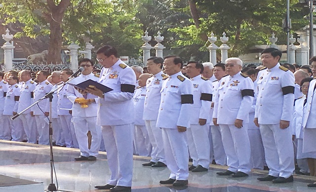 “หลังจากวันที่ 13 ตุลาคมที่ผ่านมาจนมาถึงวันนี้ ผมเหมือนคนไทยทุกคนที่รู้สึกสูญเสียพ่อ สูญเสียหลักชัยของชีวิต ดังนั้น ต้องสร้างตัวเองให้เข้มแข็งมากขึ้น สิ่งที่พระองค์พระราชทานไว้คือแนวทางที่ทำให้ประเทศของเราก้าวไปข้างหน้าอย่างมั่นคง ใช้ทรัพยากรสิ่งแวดล้อมอย่างคุ้มค่าเพื่อให้พัฒนาประเทศไปได้อย่างมั่นคงในระยะยาว ในฐานะที่ผมเป็นทหารก็พร้อมที่จะทุ่มเททุกอย่าง รวมถึงกำลังพลจะสืบสานพระราชปณิธาน สิ่งสำคัญที่สุดนอกจากการถวายความอาลัยแล้วคือทำพระราชปณิธานของพระองค์ให้เป็นรูปธรรมมากที่สุด ซึ่งพิสูจน์มาแล้วว่า โครงการพระราชดำริของพระองค์ ทำให้ประเทศไทยเจริญเติบโตอย่างมั่นคงและยั่งยืน ซึ่งหลายประเทศได้นำโครงการพระราชดำริของพระองค์ไปเป็นแนวทางในการพัฒนาประเทศ” ผู้บัญชาการทหารบก กล่าว