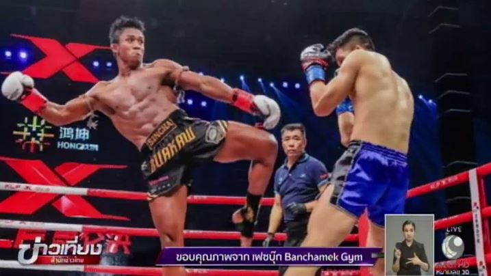 สำนักข่าวไทย 2 ม.ค.-บัวขาว บัญชาเมฆ โชว์ลีลาแม่ไม้มวยไทยครบเครื่อง ไล่อัดเอาชนะคะแนนเทียนซิน นักชกชาวจีน ในศึกคุนหลุนไฟต์ รายการมวยนัดใหญ่ที่จีน เมื่อวันที่ 1 ม.ค. 2560
