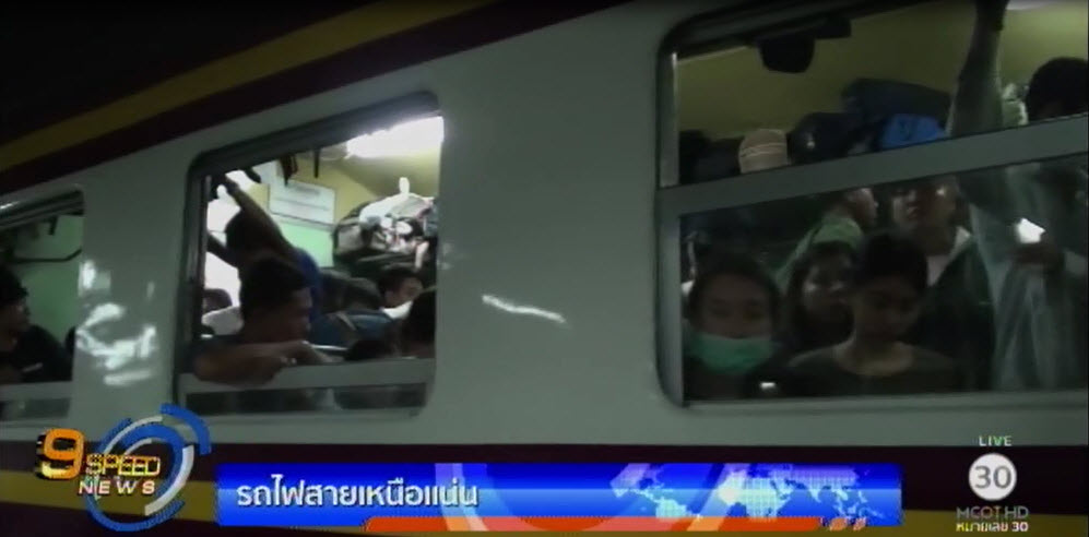 แม้จะเหลือวันหยุดยาวในช่วงเทศกาลปีใหม่อีก 2 วัน แต่ปรากฏว่ารถไฟสายเหนือ 3 ขบวนแรก ต้นทางจากสถานีเชียงใหม่ สถานีเด่นชัย และสถานีศิลาอาสน์ ปลายทางกรุงเทพฯ เมื่อช่วงค่ำที่ผ่านมา มีประชาชนใช้บริการเดินทางกลับเข้ากรุงเทพฯ แน่นเต็มทั้ง 10 โบกี้ ส่งผลให้ประชาชนที่ขึ้นระหว่างทาง ต้องซื้อตั๋วยืนจนเต็มทั้งทางเดินในขบวนมาจนถึงบันไดขึ้นลง ถึงกระนั้นที่สถานีรถไฟพิจิตร ก็ยังคงมีประชาชนมาจองซื้อตั๋วรถไฟอย่างต่อเนื่อง แม้จะไม่มีที่นั่งก็ตาม.-สำนักข่าวไทย