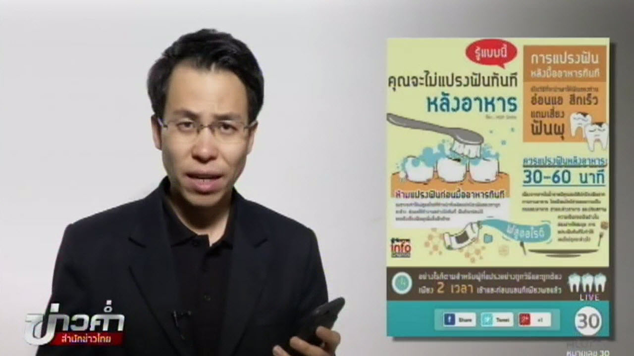กรุงเทพฯ 1 ม.ค.-บนสังคมออนไลน์ แชร์เตือนเกี่ยวกับการแปรงฟันว่า ห้ามแปรงฟันหลังอาหารทันที เรื่องนี้จริงหรือไม่ ติดตามจากศูนย์ชัวร์ก่อนแชร์.-สำนักข่าวไทย