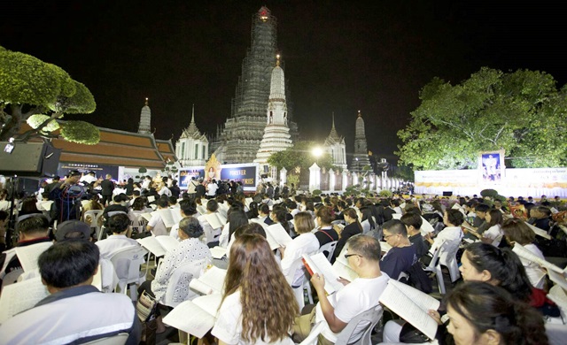 ทั้งนี้ กรมการศาสนา ร่วมกับองค์กรเครือข่าย จัดกิจกรรมสวดมนต์ข้ามปีฯ วันที่31 ธ.ค.2559–1 ม.ค.2560 ในวัดรวม 24,593 แห่ง เป็นวัดใน กทม.442 วัด ต่างจังหวัด 24,151 วัด และพื้นที่เอกชน 3 แห่ง,นอกจากนี้จัดสวดมนต์ข้ามปีอาเซียน 15 จังหวัด ได้แก่ แม่ฮ่องสอน เชียงราย เลย หนองคาย บึงกาฬ นครพนม มุกดาหาร อุบลราชธานี ศรีสะเกษ สุรินทร์ สระแก้ว ระนอง สงขลา และสตูล , ร่วมกับศูนย์ประสานงานที่กำกับดูแลพระธรรมทูตในต่างประเทศ ทั้งธรรมยุตและมหานิกาย จัดสวดมนต์ข้ามปีวัดไทยในต่างประเทศ 120 วัดและอุทยานแห่งชาติ 29 แห่ง ตลอดจนภาคเอกชนได้จัดสวดมนต์ข้ามปี แสงเทียนแห่งสยาม เป็นครั้งแรก ณ ลานเซ็นทรัลเวิลด์และลานสยามพารากอน ซึ่งมีประชาชนเข้าร่วมพิธีจำนวนมาก