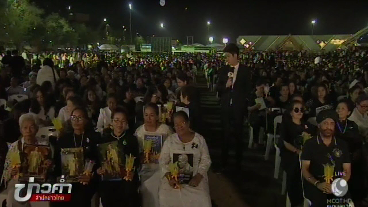 กรุงเทพฯ 31 ธ.ค.-ประชาชนจำนวนมากเข้าจับจองพื้นที่ งานแสงเทียนแห่งสยาม สวดมนต์ข้ามปีส่งท้ายปีเก่าวิถีไทยต้อนรับปีใหม่วิถีพุทธ ถวายเป็นพระราชกุศลฯ พุทธศักราช 2560 ที่ท้องสนามหลวงกันเป็นจำนวนมาก ติดตามจากรายงาน.-สำนักข่าวไทย