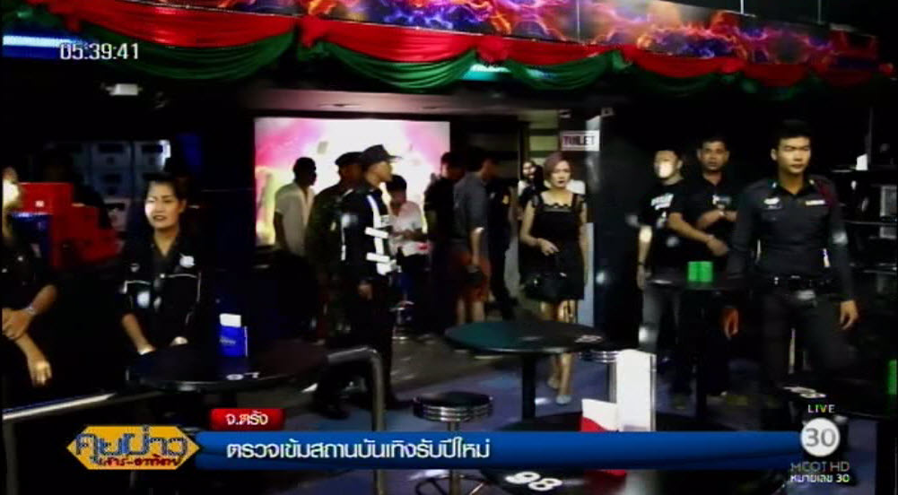 เวลา 22.00 น.ที่ผ่านมา (30 ธ.ค.) พ.ต.อ.ตรีวิทย์ ศรีประภา รองผู้บังคับการตำรวจภูธรจังหวัดตรัง พร้อมเจ้าหน้าที่หลายฝ่าย สนธิกำลังเข้ากวดขันจำหน่ายเครื่องดื่มแอลกอฮอล์ และเวลาเปิด-ปิดของสถานบันเทิง รวมถึงตรวจเข้มยาเสพติดตามสถานบันเทิงต่างๆ ใน อ.เมืองตรัง เพื่อเพิ่มความมั่นใจในความปลอดภัยในช่วงเทศกาลปีใหม่ รวมถึงป้องกันการกระทำความผิดเกี่ยวกับกฎหมายอื่นๆ เช่น การค้ามนุษย์ ลักลอบเล่นการพนัน ยาเสพติด โดยได้เข้าตรวจค้นสถานบันเทิงพร้อมกัน 3 แห่ง เบื้องต้นไม่พบสิ่งผิดกฎหมาย และได้สุ่มตรวจปัสสาวะนักเที่ยวและพนักงานเพื่อป้องกันการลักลอบเสพและจำหน่ายยาเสพติด