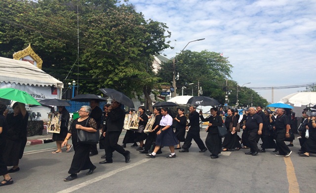 บรรยากาศโดยรอบพระบรมมหาราชวังตลอดทั้งวัน ประชาชนจากทั่วสาร ทิศเดินทางหลั่งไหลเข้ากราบถวายบังคมพระบรมศพพระบาทสมเด็จพระปรมินทรมหาภูมิพลอดุลยเดช ณ พระที่นั่งดุสิตมหาปราสาท ต่อเนื่อง จน ถึงขณะนี้มีประชาชนได้เข้ากราบถวายบังคมพระบรมศพเเล้วกว่า 30,000 คน โดยเจ้าหน้าที่จัดระเบียบเเถวตั้งเเต่เวลา 05.00-21.00 น.ของทุกวัน จะเปิดให้ประชาชนเข้ามาต่อเเถวบริเวณสนามหลวง หากมาก่อน 21.00 น. จะได้เข้ากราบถวายบังคมพระบรมศพทุกคน จึงขอความร่วมมือประชา ชนในช่วงวันหยุดยาวที่จะมาถึงนี้ ให้พี่น้องจากต่างจังหวัดมาในช่วงเช้า เเละพี่น้องที่อยู่ในกรุงเทพมหานครมาช่วงเย็น เพื่อไม่ต้องรอคิวนานเเละมีการระบายเเถวได้ดีกว่าการมาพร้อมกันทีเดียวในช่วงเช้า ซึ่งตลอดการรอเข้าเเถวของประชาชน ยังคงมีจิตอาสาคอยบริการอาหาร เครื่องดื่มเเละยารักษาโรคไม่ขาดสาย