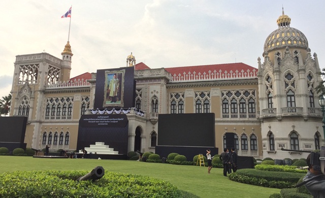 ผู้สื่อข่าวรายงานว่า เจ้าหน้าที่ทำเนียบรัฐบาล ได้นำพระบรมฉายาลักษณ์สมเด็จพระปรมินทรมหาภูมิพลอดุลยเดช มาประดิษฐานไว้ด้านบนของตึกไทยคู่ฟ้า และบริเวณสนามหญ้า ได้จัดทำเวทีทั้งสองฝั่งของเวที ติดจอโปรเจคเตอร์ขนาดใหญ่ ที่จะฉายภาพพระราชกรณียกิจของพระบาทสมเด็จพระปรมินทรมหาภูมิพลอดุลยเดช ตั้งแต่ทรงพระเยาว์จนถึงปัจจุบัน มีวงดนตรีดุริยางค์ศิลป์ จากกรมศิลปากรมาร่วมบรรเลงเพลงชาติไทย เพลงสรรเสริญพระบารมี และบทเพลงพระราชนิพนธ์