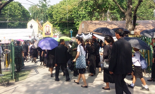สนามหลวง 21 พ.ย.-ประชาชนทั่วสารทิศหลั่งไหลเข้ากราบถวายบังคมพระบรมศพต่อเนื่อง การจัดระเบียบคิวเรียบร้อย ให้บัตรลาคิวผู้ที่ออกจากแถวไปทำธุระส่วนตัว กลับมาต่อแถวที่เดิม
