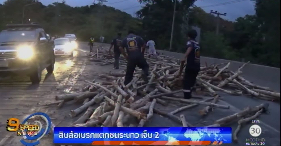 สระบุรี 20 พ.ย.-รถสิบล้อบรรทุกไม้ยูคาลิปตัสเบรกแตกทางโค้งลงเนินเขาจัน ถนนมิตรภาพ ช่วงอำเภอมวกเหล็ก จ.สระบุรี พุ่งชนท้ายรถกระบะ รถยนต์ และรถจักรยานยนต์ มีผู้บาดเจ็บ 2 คน