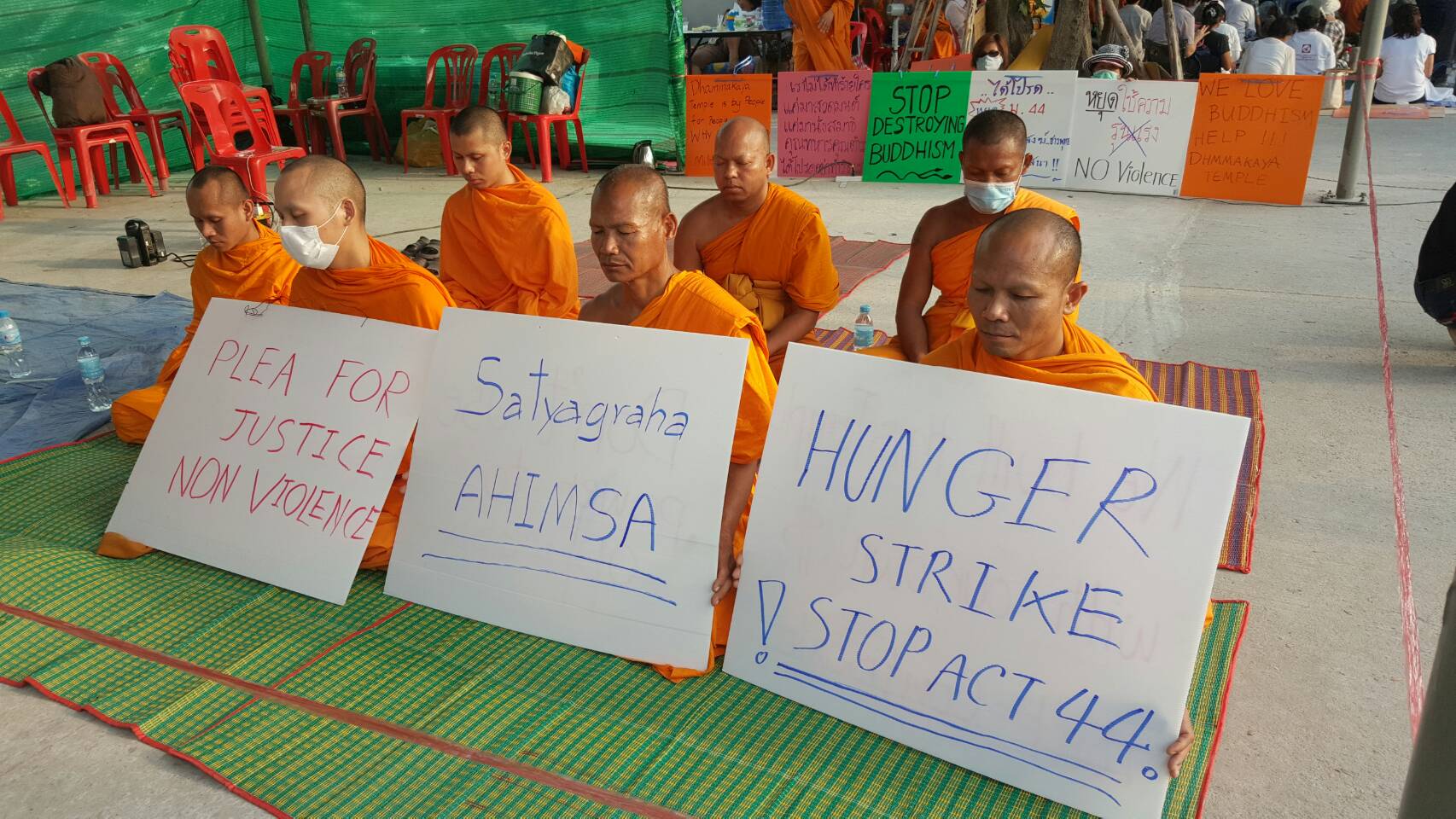 ขณะเดียวกันก็มีพระสงฆ์ 7 รูป ที่้อ้างว่ามาจากภาคเหนือและภาคตะวันออกเฉียงเหนือ เดินทางมานั่งสมาธิและประกาศอดอาหารเพื่อแสดงจุดยืนตั้งแต่เวลา 16 นาฬิกาที่ผ่านมา เพื่อกดดันเจ้าหน้าที่รัฐยกเลิกการใช้มาตรา 44 ควบคุมพื้นที่ และจะอดอาหารไปจนกว่าจะมีการยกเลิก