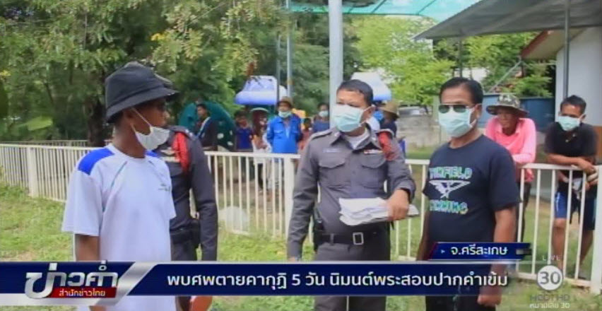 ศรีสะเกษ 20 พ.ย. – พบศพชายวัยกลางคนเสียชีวิตคากุฏิพระที่จังหวัดศรีสะเกษมาแล้วกว่า 5 วัน เจ้าหน้าที่คาดว่าอาจเป็นฝีมือของพระเจ้าของกุฏิที่เมาสุราและทะเลาะวิวาทก่อนลงมือฆ่า เบื้องต้นยังให้การปฏิเสธ