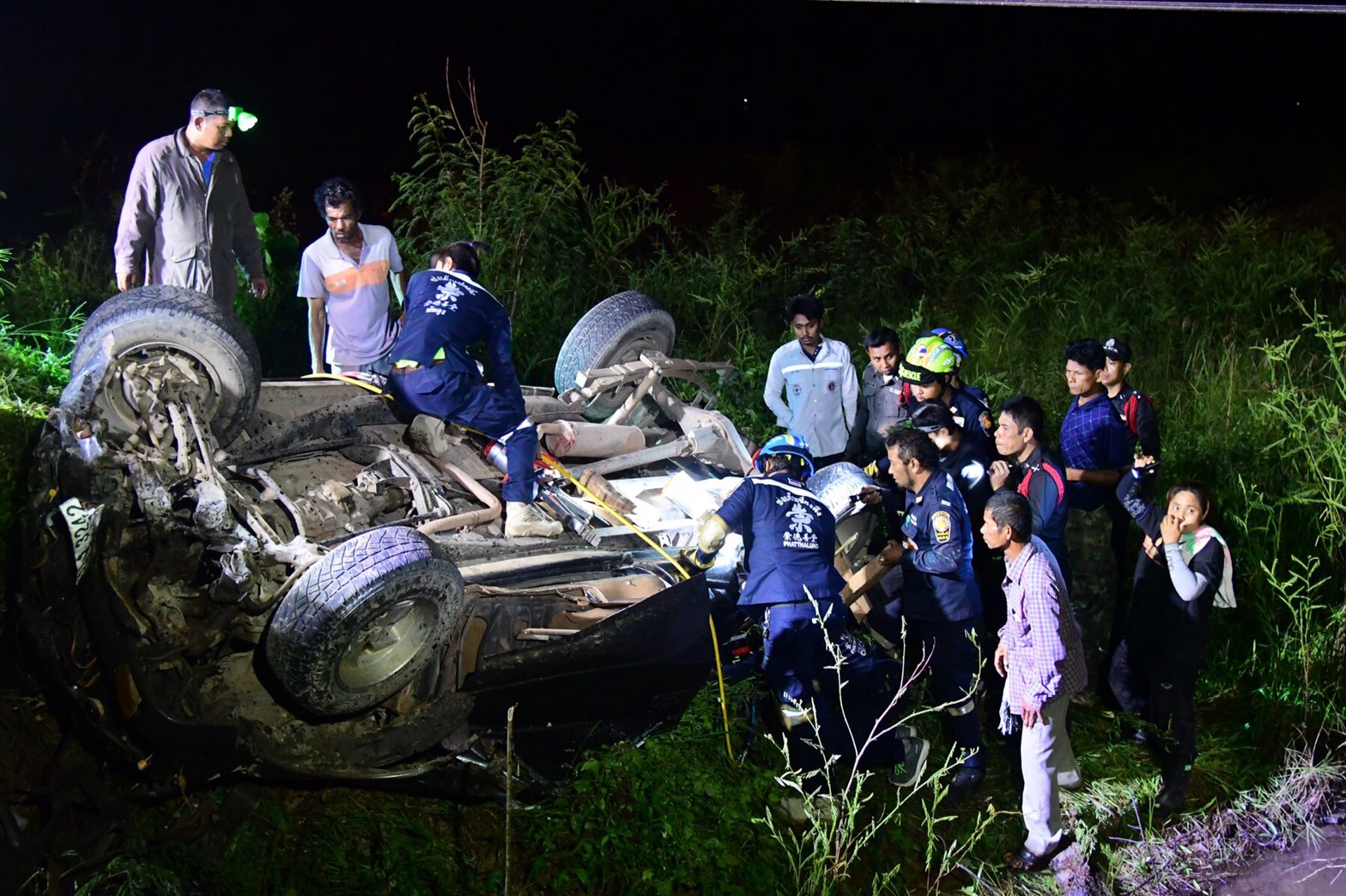 ชาวบ้านละแวกดังกล่าวให้การเบื้องต้นว่าเห็นรถขับมาด้วยความเร็ว เมื่อมาถึงทางโค้งลงเนินรถพุ่งชนเสาไฟฟ้าริมถนนก่อนพลิกตกใต้สะพาน เจ้าหน้าที่สันนิษฐานคนขับอาจหลับใน พร้อมนำศพส่งไปตรวจชันสูตรที่โรงพยาบาลกงหรา เพื่อรอญาติมาติดต่อนำไปบำเพ็ญกุศล.-สำนักข่าวไทย