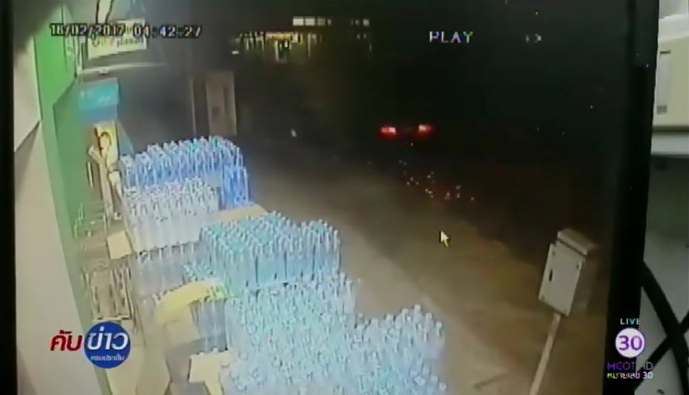 ภาพจากกล้องวงจรปิดหน้าหมู่บ้านพิมานชล ถนนรอบบึง เขตเทศบาลนครขอนแก่น เผยให้เห็นรถเก๋งหรูคันหนึ่งวิ่งมาด้วยความเร็วสูง ก่อนกวาดเอารถจักรยานยนต์ที่จอดอยู่หน้าห้างโลตัสเอ็กซ์เพรส สาขารอบบึง กระเด็นไปไกลกว่า 10 เมตร ขณะที่กล้องอีกตัวหนึ่งได้บันทึกภาพของรถเก๋งคันดังกล่าวขับมาด้วยความเร็วสูงจนไม่สามารถจับทะเบียนรถได้ เหตุเกิดเมื่อเวลา 04.42 น. คืนวันที่ 17 ก.พ.ที่ผ่านมา