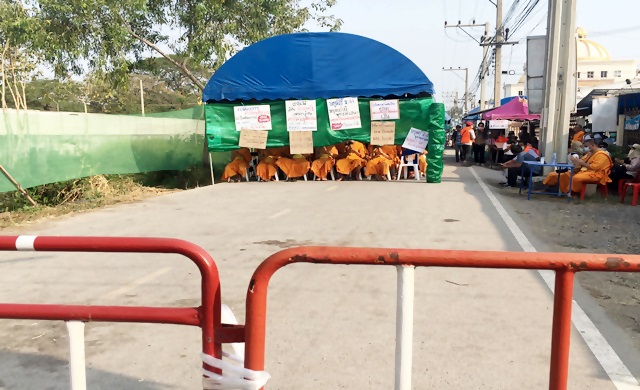 วัดพระธรรมกาย 21 ก.พ.- เจ้าหน้าที่ยังคงจัดกำลังตรวจเข้มที่ประตู5และ6 วัดพระธรรมกาย ห้ามคนภายนอกเข้าวัด ด้านพระลูกศิษย์วัดยังปักหลักในเต็นท์หน้าประตู 5 พระพ้อบิณฑบาตลำบาก อาหารฉันไม่พอ