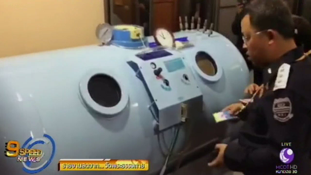 ขณะเดียวกัน วันนี้ดีเอสไอได้นำผู้เชี่ยวชาญ ทั้งเจ้าหน้าที่จากสำนักงานคณะกรรมการอาหารและยา หรืออย. จากกระทรวงสาธารณสุข และเจ้าหน้าที่จากกระทรวงพลังงาน เข้าไปตรวจสอบเครื่องไฮเปอร์แบริกที่ติดตั้งอยู่ภายในอาคารดาวดึงส์ โดยเมื่อผู้เชี่ยวชาญได้เข้าไปตรวจสอบแล้ว ก็ได้ส่งข้อมูลให้ดีเอสไอ แต่ยังไม่เปิดเผยรายละเอียดกับสื่อมวลชน อีกทั้งยังไม่อนุญาตให้สื่อมวลชนเข้าไปติดตามทำข่าวได้ ซึ่งในประเด็นนี้ พระสนิทวงศ์ วุฑฒิวังโส ผู้อำนวยการฝ่ายสื่อสารองค์กรวัดพระธรรมกาย ยืนยันว่าไม่ใช่เครื่องเบบี้เฟซที่นำไปใช้ให้ผิวพรรณเต่งตึงแต่อย่างใด แต่เป็นเครื่องที่ช่วยเรื่องสุขภาพ เนื่องจากพระธัมมชโยมีอาการป่วย คือการอุดตันของเส้นเลือดจึงทำให้ขาบวมอย่างที่เป็นข่าว.-สำนักข่าวไทย