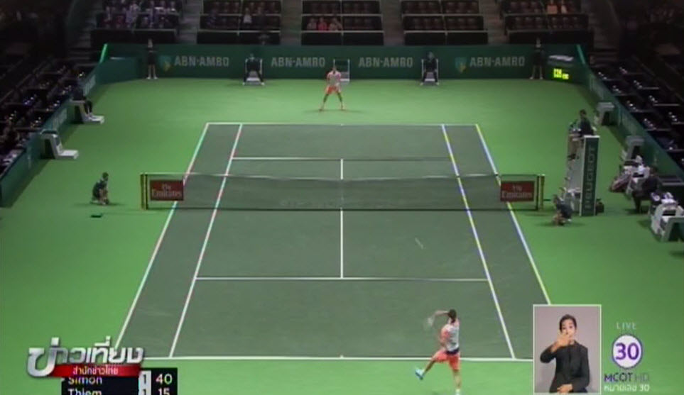 เทนนิสเอบีเอ็น อัมโร เวิลด์ ที่เมืองรอตเตอร์ดัม ประเทศเนเธอร์แลนด์ ประเภทชายเดี่ยวรอบ 2 โดมินิค เธียม นักเทนนิสชาวออสเตรียมือวางอันดับ 2 ของรายการ ที่เห็นด้านหลัง เอาชนะ กิลล์ส ซิมง จากฝรั่งเศส 2 เซตรวด 6-4 และ 7-6 ไทเบรก 7-4 ผ่านเข้าสู่รอบก่อนรองชนะเลิศ ไปพบกับ ปิแอร์-อูเกส แอแบร์ นักเทนนิสชาวฝรั่งเศส