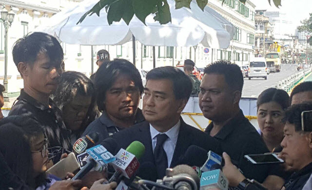ส่วนที่ชาวบ้านมาชุมนุมกันนั้น นายอภิสิทธิ์ เห็นว่า ทุกคนต้องเคารพกฎหมาย .- สำนักข่าวไทย