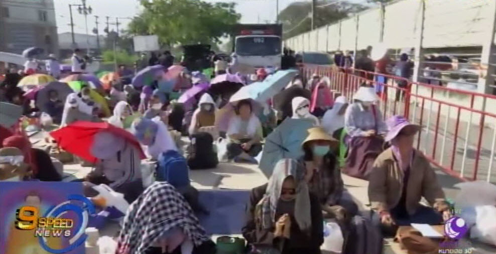 ศิษย์วัดพระธรรมกายรวมตัวนั่งสวดมนต์ประตู 5-6 รปภ.เข้ม