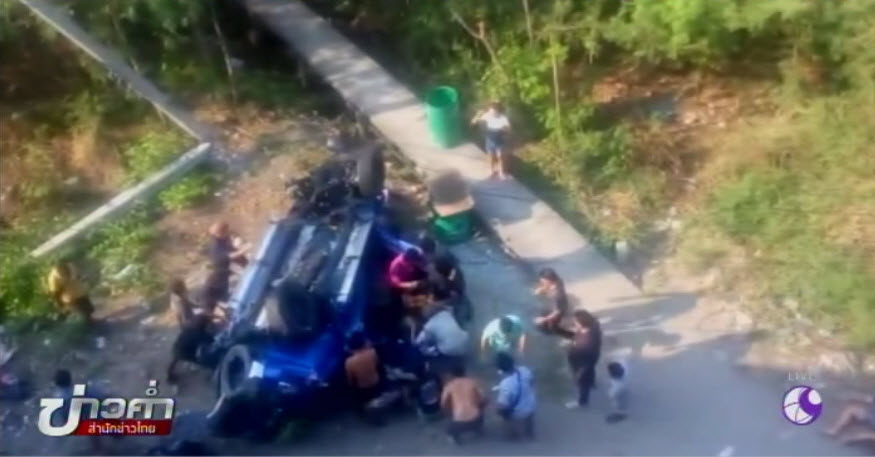 สมุทรปราการ 5 มี.ค. – เกิดเหตุระทึก รถกระบะตกทางด่วน คนขับพร้อมผู้โดยสาร 4 คน รอดปาฏิหาริย์