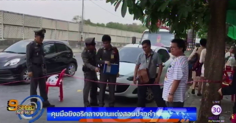 กรุงเทพฯ 5 มี.ค. – เจ้าหน้าที่พิสูจน์หลักฐานเข้าตรวจสอบเหตุวัยรุ่นเขม่นกัน ก่อนชักอาวุธปืนยิงใส่กันกลางงานแต่งย่านสายไหม ทำให้มีผู้บาดเจ็บ 3 คน ที่เกิดเหตุพบปลอกกระสุนปืน คราบเลือดจำนวนมาก และปืนขนาด 9 มม. แบบออโตเมติก ซุกซ่อนห่างจากบ้านงานแต่ง 20 เมตร สอบสวนทราบว่า ก่อนเริ่มแห่ขันหมาก วัยรุ่นที่มาร่วมงานเกิดเขม่นกับวัยรุ่นในพื้นที่ และขี่รถปาดหน้าทำร้ายร่างกายกัน ตำรวจจึงเข้าระงับเหตุ แต่เมื่อตำรวจกลับไป วัยรุ่นในพื้นที่ได้ขี่รถมาสาดกระสุนใส่อริกลางงานแต่ง และถูกยิงสวนกลับ ทำให้นายพุฒิพงษ์ พลอยน้อย คนขี่รถจักรยานยนต์พามือปืนมายิงอริ ถูกยิง 6 นัด นายอนุรุตโพธิ์ศรี เสียชีวิตที่โรงพยาบาล และเด็กหญิงวัย 13 ปี ที่ถูกลูกหลง แพทย์ยังคงดูอาการอยู่ ล่าสุดมีรายงานว่า มือปืนถูกควบคุมตัวแล้ว เจ้าหน้าที่อยู่ระหว่างสอบปากคำ. -สำนักข่าวไทย