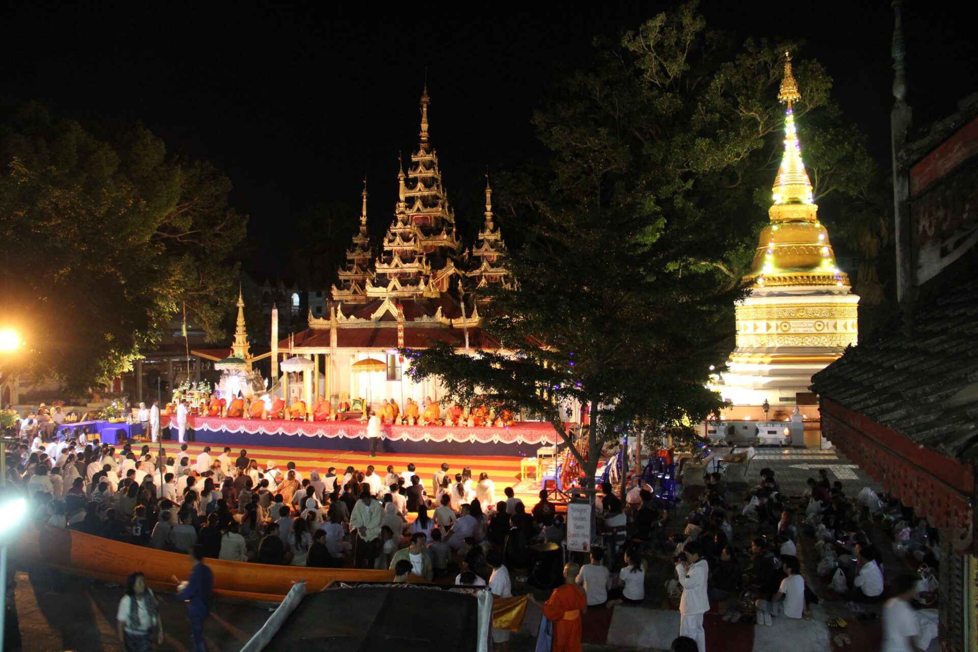 เมื่อเวลา 00.09 น. (14 ธ.ค.) ประชาชนชาวลำปางพร้อมครอบครัวนำข้าวสารอาหารแห้งร่วมตักบาตรพระสงฆ์ 19 รูป ตามประเพณีของชาวล้านนาที่สืบทอดกันมานาน “ตักบาตรเที่ยงคืน” หรือตักบาตรเป็งปุ๊ด ที่วัดศรีชุม ต.สวนดอก อ.เมือง เขตเทศบาลนครลำปาง ซึ่งเป็นวัดเก่าแก่ศิลปะพม่าอายุ 126 ปี และใหญ่ที่สุด ท่ามกลางอากาศหนาวเย็น จากนั้นได้ร่วมกันประกอบพิธีอัญเชิญผ้าขึ้นห่มองค์พระธาตุสีทอง ภายในบรรจุพระบรมสารีริกธาตุที่อัญเชิญมาจากประเทศเมียนมาร์
