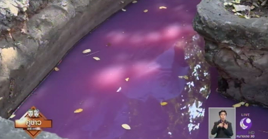 เมื่อวานนี้ (4 มี.ค.) นพ.สุวิทย์ โรจนศักดิ์โสธร นายแพทย์สาธารณสุขจังหวัดนครราชสีมา เปิดเผยผลการตรวจวิเคราะห์น้ำสีชมพูว่า ผลตรวจลักษณะทางกายภาพ เป็นน้ำขุ่นขาว มีตะกอนสีม่วงแดง ดูเหมือนเป็นสีชมพู ซึ่งสีชมพูอมม่วงที่ปรากฏอยู่ในน้ำ ไม่ใช่สีที่เกิดขึ้นเองตามธรรมชาติ แต่น่าจะเกิดจากสีภายนอกที่มีการเติมลงไป หรืออาจมีสารปนเปื้อนที่มีสีตกหล่นเข้าไปเจือปนในบ่อน้ำ จึงทำให้น้ำเป็นสีชมพู