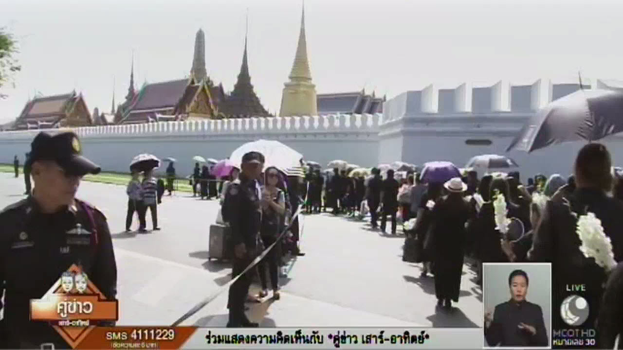 กรุงเทพฯ 19 พ.ย.-วันนี้ กอร.รส.ได้ทดลองปรับจุดต่อคิวเข้ากราบถวายบังคมพระบรมศพใหม่ จากจุดบริการด้านทิศใต้มารวมด้านทิศเหนือของท้องสนามหลวง เนื่องจากจะต้องใช้พื้นที่ฝั่งทิศใต้ในการก่อสร้างพระเมรุมาศ โดยการปรับระบบคิวเข้ากราบถวายบังคมพระบรมศพครั้งนี้ เพื่อทดลองการใช้พื้นที่ฝั่งเดียว ซึ่งพบปัญหาในช่วงเช้าที่ประชาชนยังไม่ทราบจุดท้ายแถว ขณะที่วันนี้เป็นวันแรกที่มีการปิดเส้นทางจราจรเพียง 8 เส้นทางโดยรอบพระบรมมหาราชวัง .-สำนักข่าวไทย