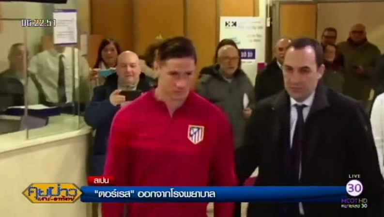 สเปน 4 มี.ค.-เฟร์นานโด ตอร์เรส ศูนย์หน้าจอมเก๋าของทีมตราหมี แอตเลติโก มาดริด ออกจากโรงพยาบาลแล้ว หลังจากถูก อเล็กซ์ เบอร์กานตินอส กระแทกล้มศีรษะฟาดพื้นจนหมดสติ