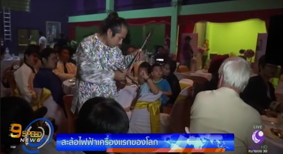 ครูแอ๊ด ภานุทัต อภิชนาธง ศิลปินพื้นบ้านล้านนา เปิดตัวเครื่องดนตรี สะล้อไฟฟ้าเครื่องแรกของโลก นำมาบรรเลงร่วมกับนักดนตรีวงเดอะสะล้อ ที่อโรคยา เดอ สารภีจังหวัดเชียงใหม่ อย่างยิ่งใหญ่ ผ่านบทเพลง ค้างคาวกินกล้วย แบบกลิ่นอายล้านนา สร้างความประทับใจให้กับกงสุลออสเตรเลียประจำจังหวัดเชียงใหม่ และกงสุลอินเดีย ประจำจังหวัดเชียงใหม่ ที่มาร่วมรับฟัง สำหรับสะล้อไฟฟ้าเครื่องนี้ ครูแอ๊ด ได้จดสิทธิบัตรการประดิษฐ์ไว้แล้ว.-สำนักข่าวไทย