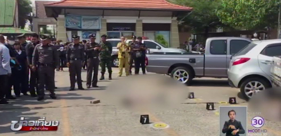 ตรวจสอบพบฝ่ายสามีใช้อาวุธปืนขนาด 9 มม. ยิงใส่ภรรยา รวมทั้งลูกชายวัย 6 ขวบ และพ่อของภรรยาที่มาด้วย ก่อนยิงตัวเองที่ขมับขวา ทำให้ น.ส.วนาวรรณ ปิยะวงศ์ ภรรยา และลูกชาย เสียชีวิตทันที ส่วนพ่อตาและตัวเองเสียชีวิตขณะนำส่งโรงพยาบาล ทราบชื่อผู้ก่อเหตุ คือ นายสุรศักดิ์ ดีไชยโย. – สำนักข่าวไทย