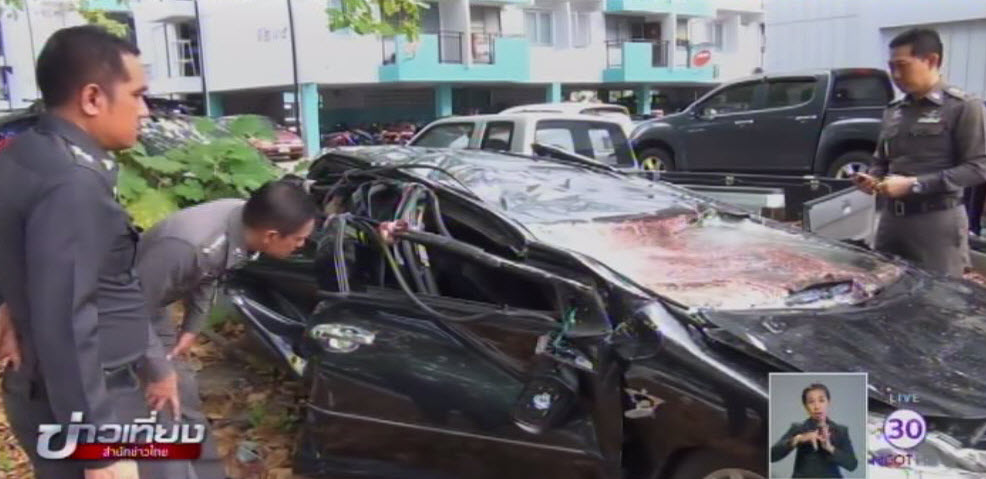 ล่าสุดในวันนี้ (3 มี.ค.) เจ้าหน้าที่จากศูนย์พิสูจน์หลักฐาน 9 เข้าตรวจสอบจุดเกิดเหตุบนชั้น 3A อีกครั้ง เพื่อนำไปสรุปหาสาเหตุที่ทำให้รถตกลงมา ซึ่งจากการตรวจสอบพบว่า รถเก๋งคันนี้ไม่ได้จอดติดอยู่กับล็อกที่อยู่ติดรั้วเหล็ก แต่จอดอยู่ล็อกถัดไป โดยเป็นการถอยหลังพุ่งชนรั้วเหล็กจนหลุด และรถตกลงไปด้านล่าง