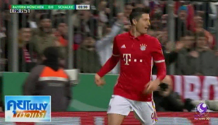 ฟุตบอลเดเอฟเบ โพคาล เยอรมนี รอบก่อนรองชนะเลิศ “เสือใต้” บาเยิร์น มิวนิก ชุดสีแดง เปิดบ้านพบ “ราชันสีน้ำเงิน” ชาลเก้ 04 เริ่มเกมเพียงแค่นาทีที่ 3 บาเยิร์นได้ประตูออกนำ 1-0 จากจังหวะที่ ฟรองค์ ริเบรี จ่ายบอลให้ โรเบิร์ต เลวานดอฟสกี้ วิ่งหลุดกับดักล้ำหน้าชิพบอลข้ามผู้รักษาประตูเข้าไป