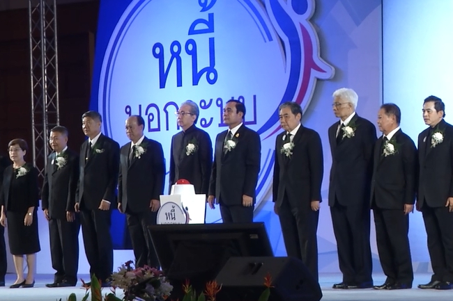 พร้อมกันนี้นายกรัฐมนตรี เป็นสักขีพยานในการมอบสินเชื่อเพื่อใช้จ่ายฉุกเฉิน ของธนาคารเพื่อการเกษตรและสหกรณ์ หรือ ธ.ก.ส. และ ธนาคารออมสิน ให้ประชาชน เพื่อขจัดหนี้นอกระบบในประเทศไทยให้เป็นศูนย์