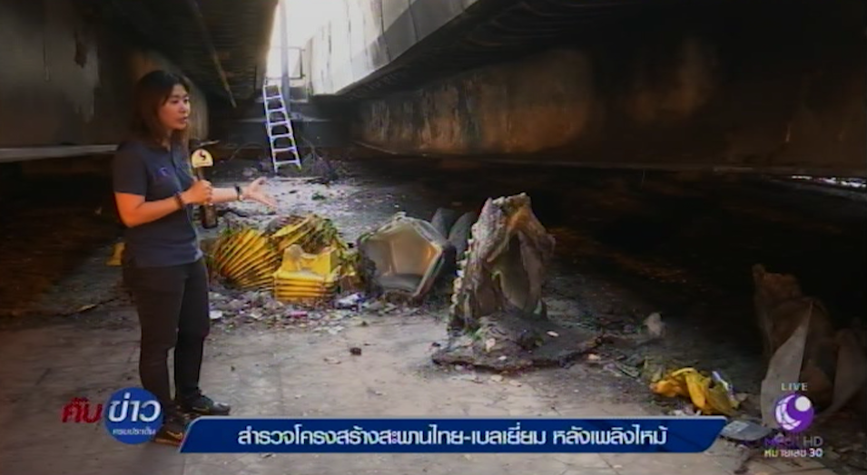 หลังเกิดเพลิงไหม้สะพานไทย-เบลเยี่ยม ล่าสุดวิศวกรรมสถานแห่งประเทศไทยฯ ร่วมกับฝ่ายที่เกี่ยวข้อง เข้าตรวจสอบโครงสร้างสะพานเพื่อประเมินแนวทางการซ่อมแซม แต่เบื้องต้นคาดว่าอาจเปิดช่องทางจราจรบางส่วนที่ไม่ได้รับผลกระทบภายในคืนนี้ ซึ่งตำรวจพร้อมปรับแผนการจราจรรองรับ ติดตามจากรายงาน.-สำนักข่าวไทย