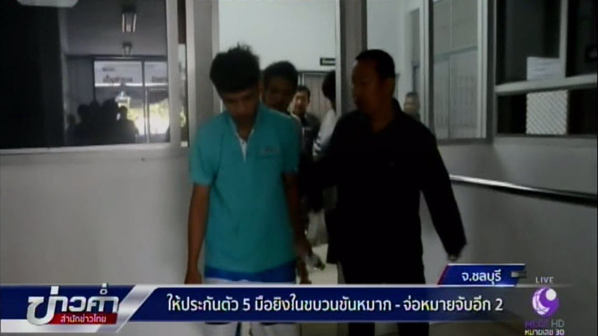 ชลบุรี 28 ก.พ.-ความคืบหน้ากรณียิงปืนในขบวนขันหมากจนเป็นเหตุให้มีผู้ถูกลูกหลงเสียชีวิตที่ จ.ชลบุรี ล่าสุด มีผู้เดินทางเข้ามอบตัวเพิ่มอีก 1 คน ก่อนถูกส่งฟ้องศาลพร้อมกับคนอื่นๆ รวม 5 คน ซึ่งศาลอนุญาตให้ใช้หลักทรัพย์ประกันตัวคนละ 150,000 บาทแล้ว