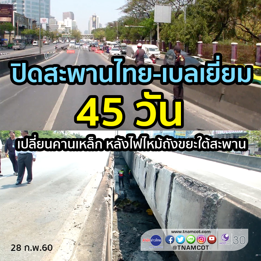 บก.จร.แจ้งปรับจราจรแยกวิทยุ ปิดซ่อมสะพานไทย-เบลเยี่ยม
