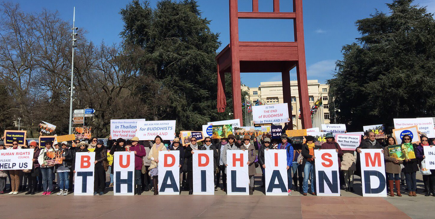 ทั้งนี้ผู้สื่อข่าวรายงานว่า เมื่อเวลาราว 13.45 น. ของวันที่ 27 กุมภาพันธ์ กลุ่มผู้ประท้วงดังกล่าวราว 60-70 คน พร้อมด้วยพระสงฆ์ 5-6 รูป ได้มารวมตัวกันที่ลานบริเวณข้างสำนักงานสหประชาชาติซึ่งเป็นจุดที่ผู้คนนิยมไปถ่ายรูป โดยมีการถือป้ายประท้วงและทำการถ่ายภาพหมู่ร่วมกันแต่ไม่ชัดเจนว่ามีผู้แทนของกลุ่มได้เดินทางเข้าไปยื่นหนังสือให้กับหน่วยงานใดของสหประชาชาติตามที่มีการให้ข่าวหรือไม่ เนื่องจากเป็นวันเปิดประชุมคณะมนตรีสิทธิมนุษยชนแห่งสหประชาชาติซึ่งมีผู้แทนระดับรัฐมนตรีและผู้แทนระดับสูงจากประเทศสมาชิกสหประชาชาติมากกว่า 100 ประเทศเข้าร่วม ทำให้มีการรักษาความปลอดภัยในการเข้า-ออกของบุคคลต่างๆ อย่างเข้มงวด.-สำนักข่าวไทย