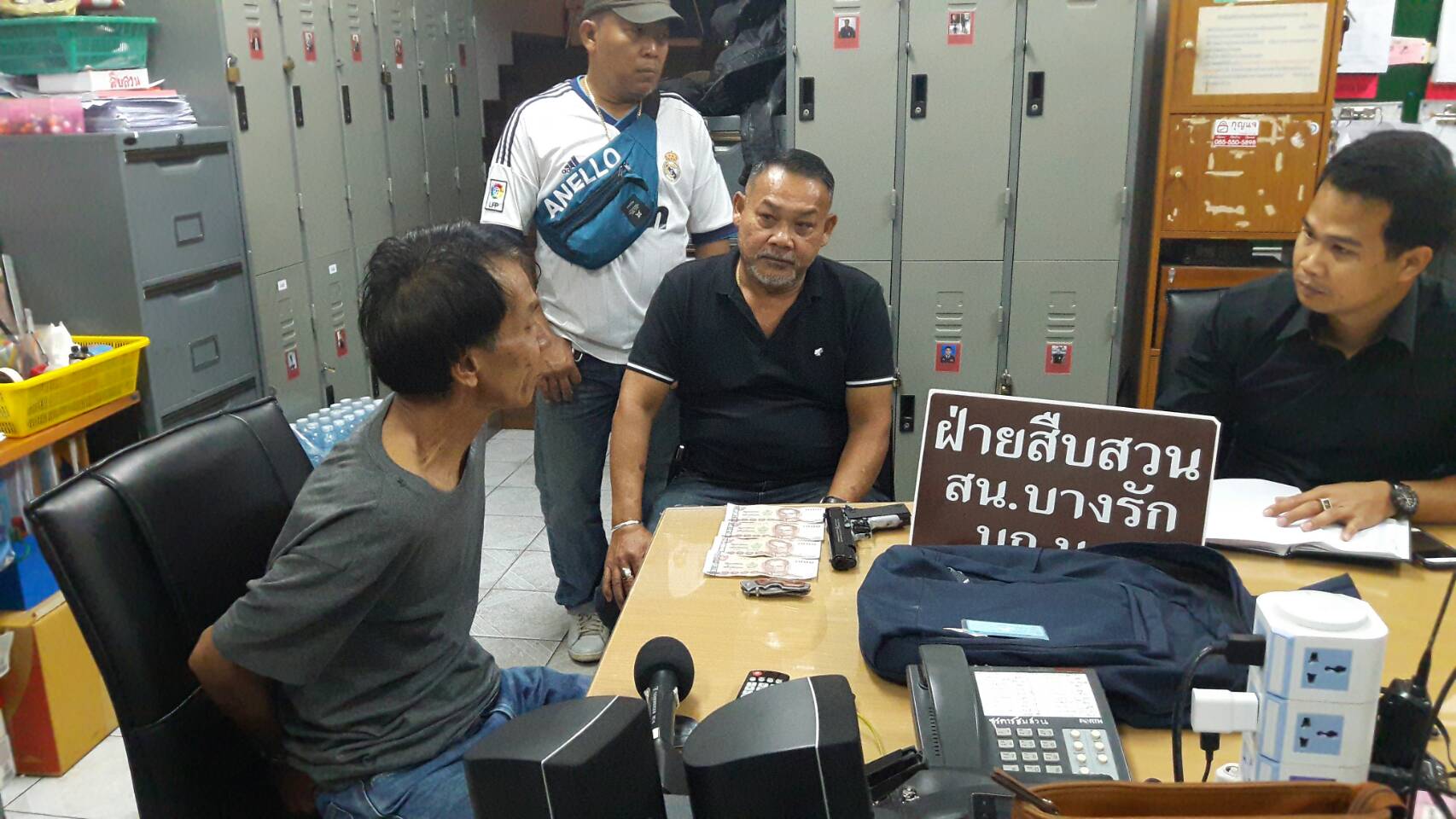 นายศักดา วรวุฒิ อายุ 58 ปี ชาวสมุทรปราการ ถูกคุมตัวมาสอบสวน ที่ สน.บางรัก หลังก่อเหตุใช้ปืนบีบีกันบุกจี้ชิงเงินธนาคารไทยพาณิชย์ สาขาอาคาร ปาโซ่ ทางเวอร์ ถนนสีลม เขตบางรัก เมื่อเวลาประมาณ 14.00 น. ก่อนถูกตำรวจและพลเมืองดีในย่านนั้น ช่วยกันจับกุมตัวไว้ได้บริเวณหลังตลาดไอทีเอส จากการสอบสวนนายศักดา รับสารภาพว่า เดิมมีอาชีพรับจ้างทั่วไป และทำงานก่อสร้าง ย่าน จ.สมุทรสาคร แต่ตกงานมาได้ 6 เดือน จึงไม่มีเงินจ่ายค่าเช่าบ้าน ก่อนเกิดเหตุนั่งรถเมล์มาจาก ย่านบางปะกอก ลงรถเมล์ที่สวนลุมพินี โดยพกปืนบีบีกันที่ซื้อมาเมื่อ 3 ปีก่อนมาด้วย จากนั้นเดินเท้ามาเรื่อย ๆ ไม่มีจุดหมาย กระทั่งถึงธนาคารเห็นมีแต่ผู้หญิงและคนใช้บริการไม่กี่คน จึงเดินเข้าไปกดบัตรคิวแล้วนั่งรอ พอถึงคิวก็เดินไปที่เคาน์เตอร์ ช่อง3 ก่อนหยิบกระเป๋าเป้ที่สะพายมาวางบนเคาน์เตอร์ และรูดซิบโชว์อาวุธปืน พร้อมพูดว่า “นั่งอยู่นิ่งๆ เอาเงินใส่กระเป๋ามา” พนักงานประจำเคาน์เตอร์ ได้ล็อคกุญแจ และถอยหลัง ตามที่ได้รับการอบรมมา